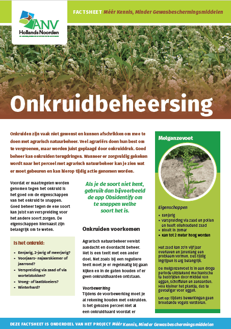 Als onderdeel van het project Meer Kennis, Minder Gewasbeschermingsmiddelen heeft ANV Hollands Noorden twee factsheets opgesteld.